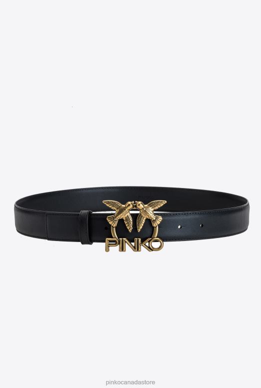 Belts | Love Birds leather belt Pinko BLACK-ANTIQUE GOLD T8J281045