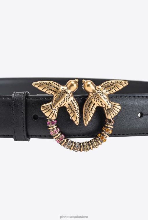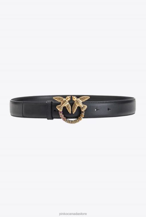 Belts | Love Birds leather belt Pinko BLACK-ANTIQUE GOLD T8J28968
