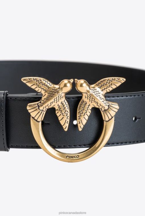 Belts | Love Birds leather belt Pinko BLACK-ANTIQUE GOLD T8J28992