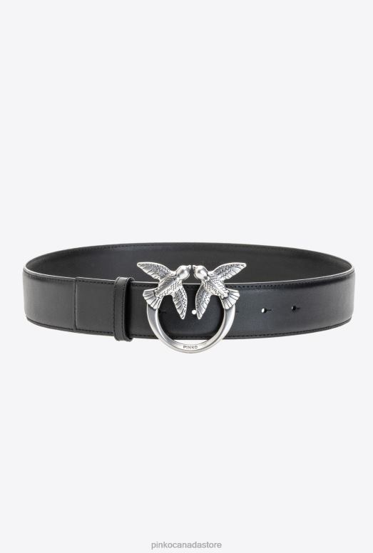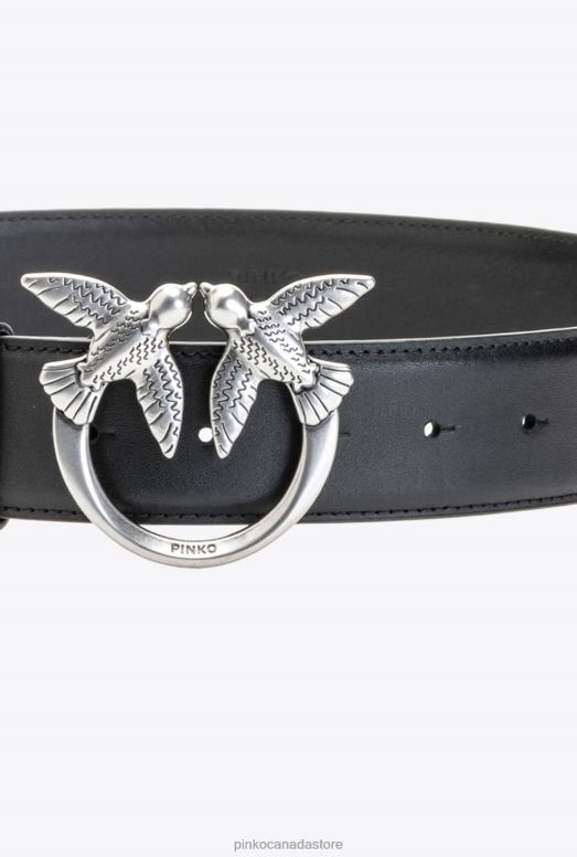 Belts | Love Birds leather belt Pinko BLACK-OLD SILVER T8J281018