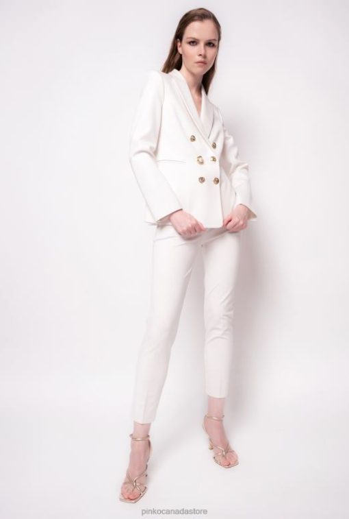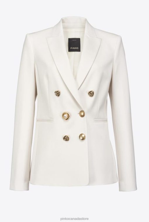Blazer in technical, full Milano-knit stretch viscose fabric, with special scuba-effect finish. Lapels and double welt side pockets. Double-breasted fastening with assorted jewel buttons, each one different from the others.