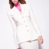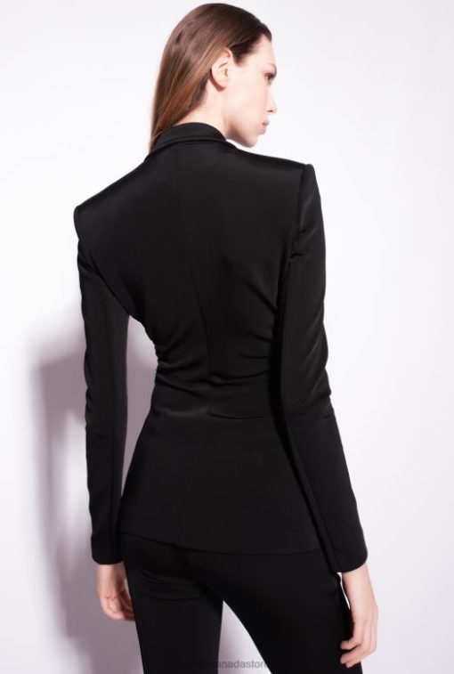 Feminine blazer with a snug fit on the sides, in scuba-effect flowing stretch technical viscose. Lapel collar, long, snug-fitting sleeves and welt pocket at the front. Gathered at the sides, where the jacket has a snug fit. Single-breasted with button fastening at the front.