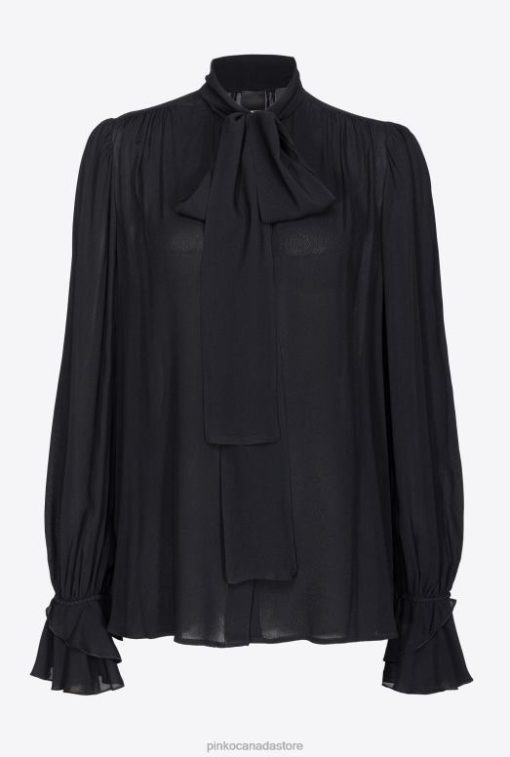 Blouses | Blouse with bow and ruching Pinko LIMO BLACK T8J28238