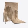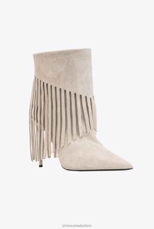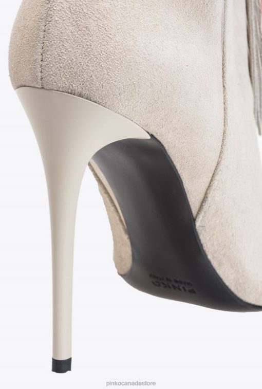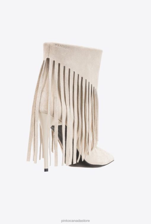 Ankle boots in soft suede, with snug tubular design, decorative cowboy-style fringing and small embossed PINKO logo at the top. Tapered toe and leather sole with 10-cm stiletto heel. Padded insole and breathable microfibre lining.
