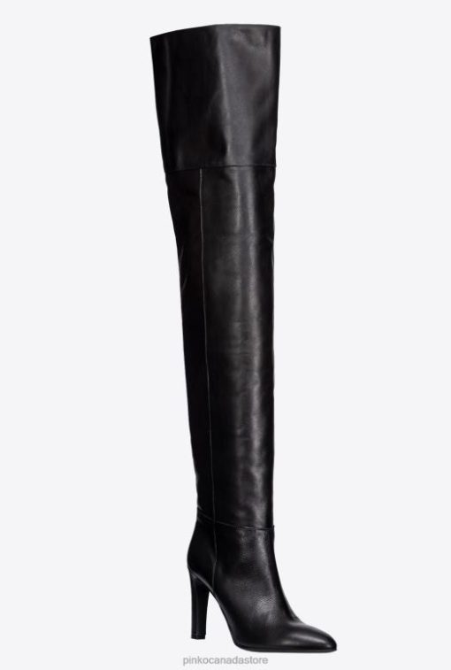 Boots | Thigh-high leather boots Pinko LIMO BLACK T8J281105