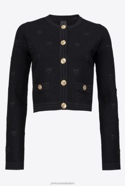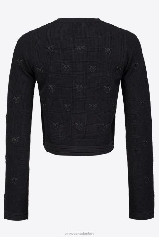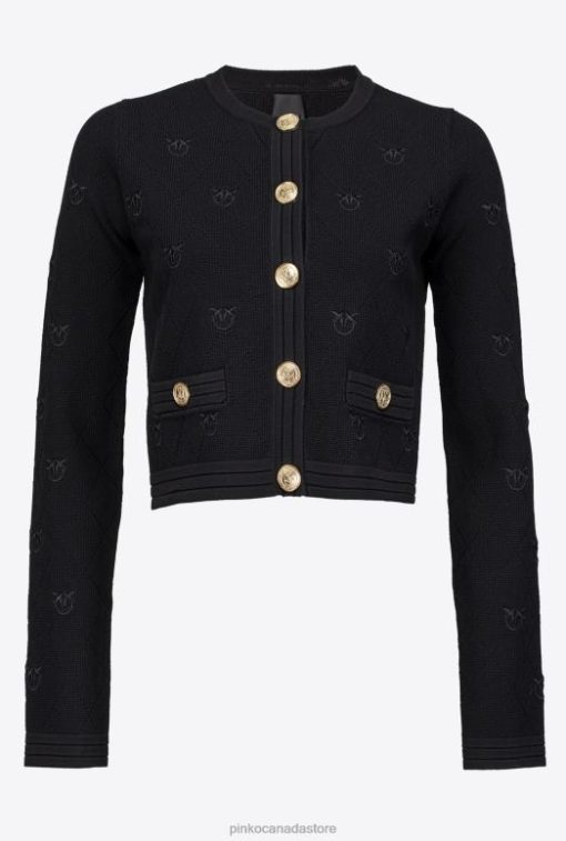 Cardigan | Cropped jacquard Love Birds cardigan Pinko LIMO BLACK T8J28554