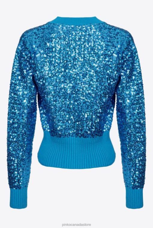 Cardigan | Fully sequinned cardigan Pinko DIRECTOR BLUE T8J28548