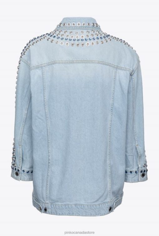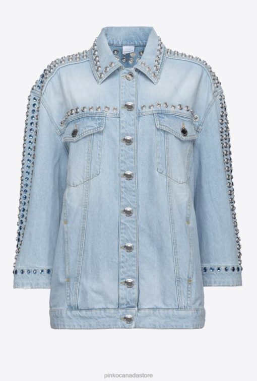 Casual Jackets | Denim jacket with metal and rhinestones Pinko LIGHT BLEACH WASH T8J28835
