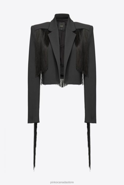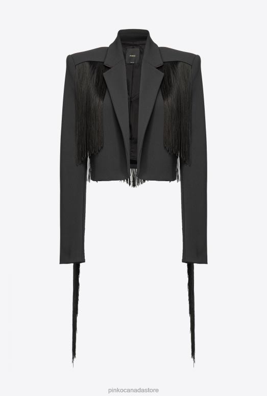 Casual Jackets | Spencer jacket with long fringing Pinko LIMO BLACK T8J28599