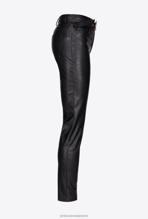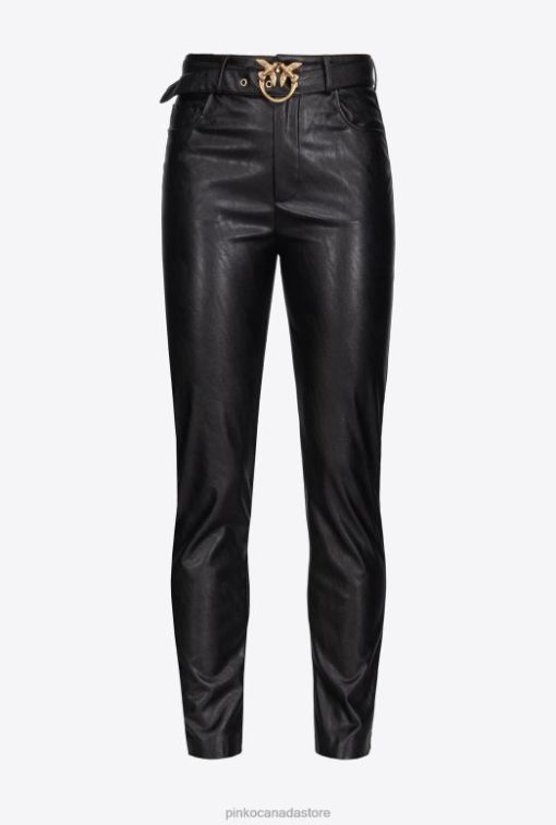 Casual Trousers | Leather-effect trousers with Love Birds belt Pinko LIMO BLACK T8J28785