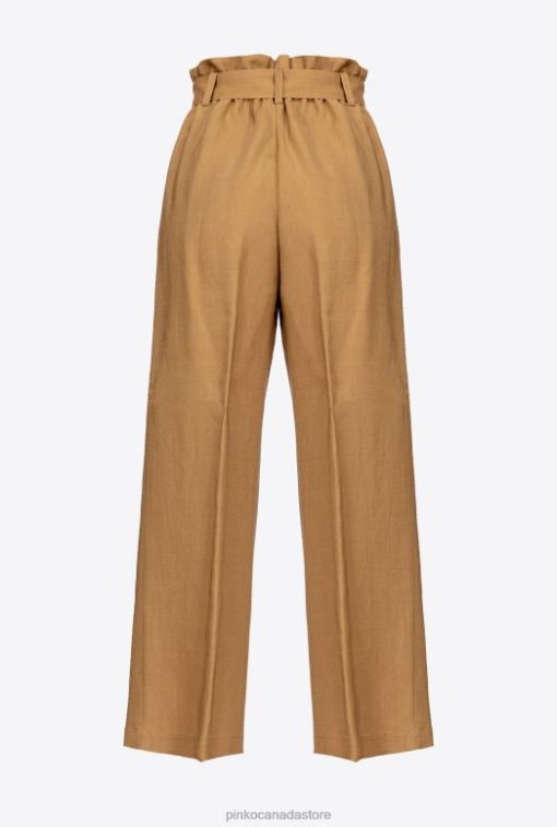 Casual Trousers | Linen trousers with bow belt Pinko MUSTARD T8J28706