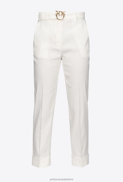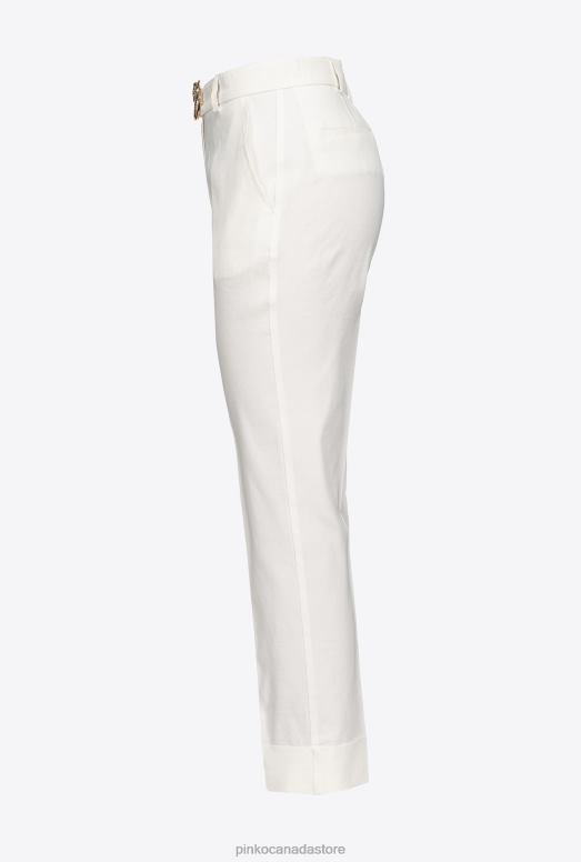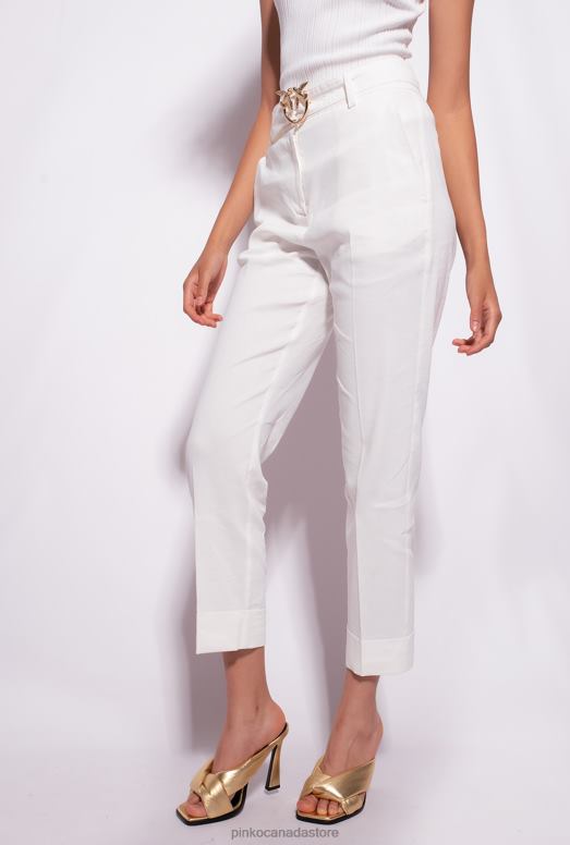 Casual Trousers | Linen trousers with Love Birds belt Pinko CLOUD WHITE T8J28723