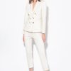 Cigarette trousers in technical, full Milano-knit stretch viscose fabric, with special scuba-effect finish. Pressed crease in the middle of the legs on the front and back, slanted front pockets and welt pockets on the back. Lined. Belt loops on the waist. Small hook-and-eye and zip fastening. – Model is 178cm tall and wears a size 40.