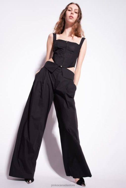 Casual Trousers | Wide-leg poplin trousers Pinko LIMO BLACK T8J28783