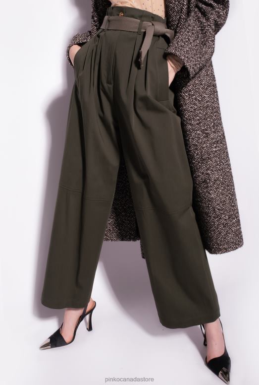 Casual Trousers | Wide-leg trousers with belt Pinko ARMY GREEN T8J28784