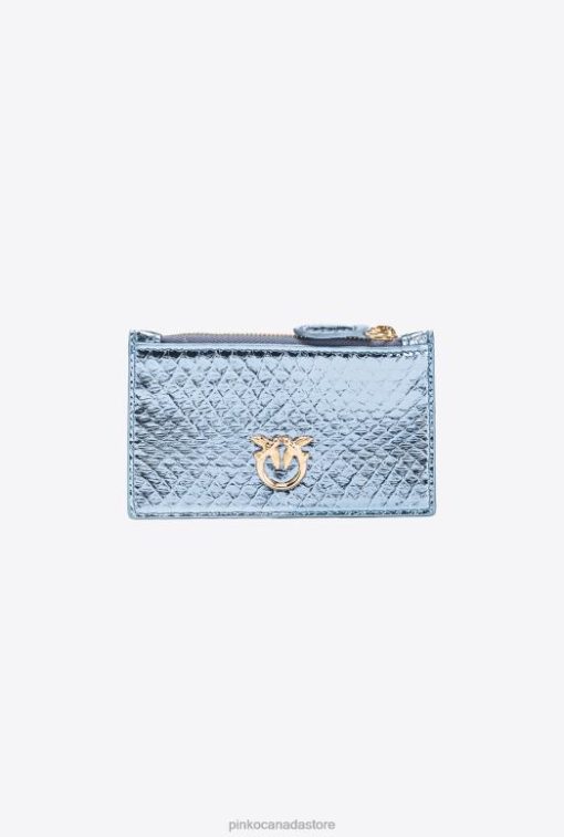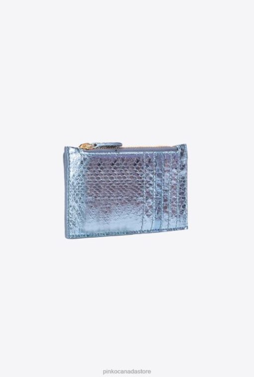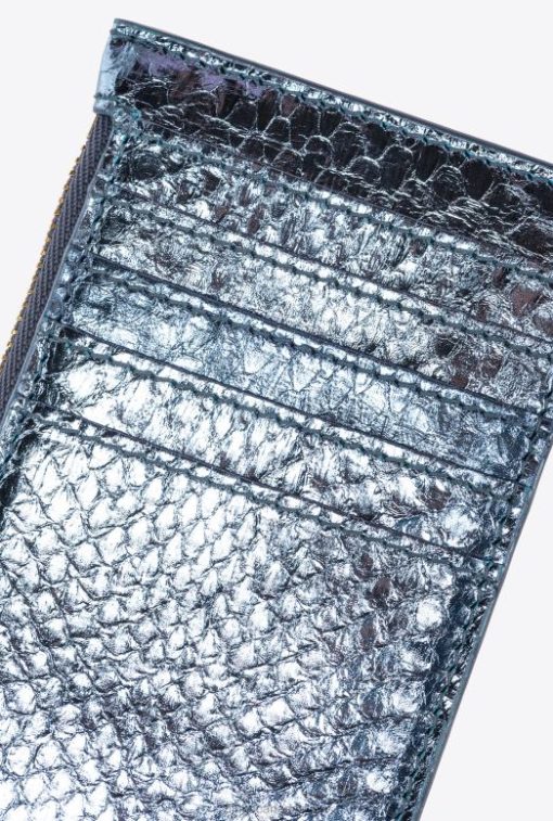 Clutch Bags | Galleria zipped card holder in laminated reptile skin Pinko LIGHT BLUE-SHINY GOLD T8J281179