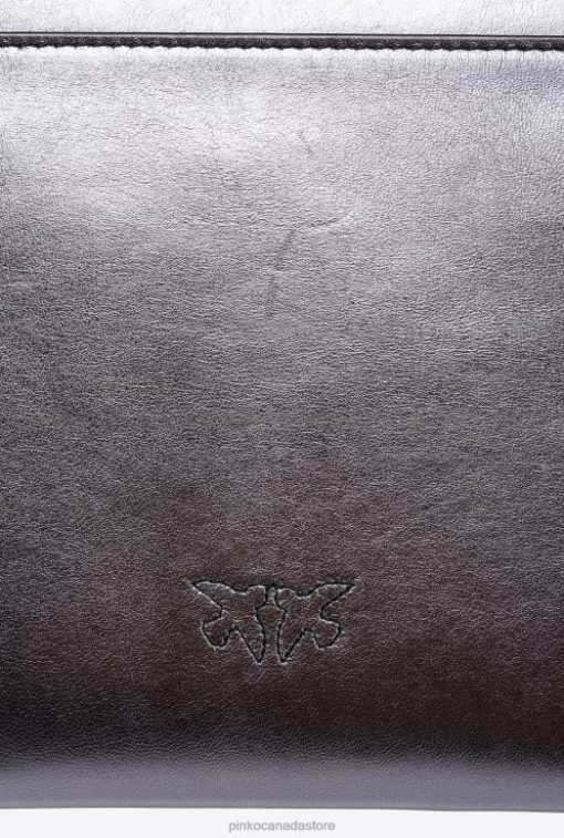 Flat envelope-shaped clutch bag in laminated nappa leather, customised with Love Birds Diamond Cut logo plaque on the front. Complete with wristlet. Magnetic fastening under the flap.