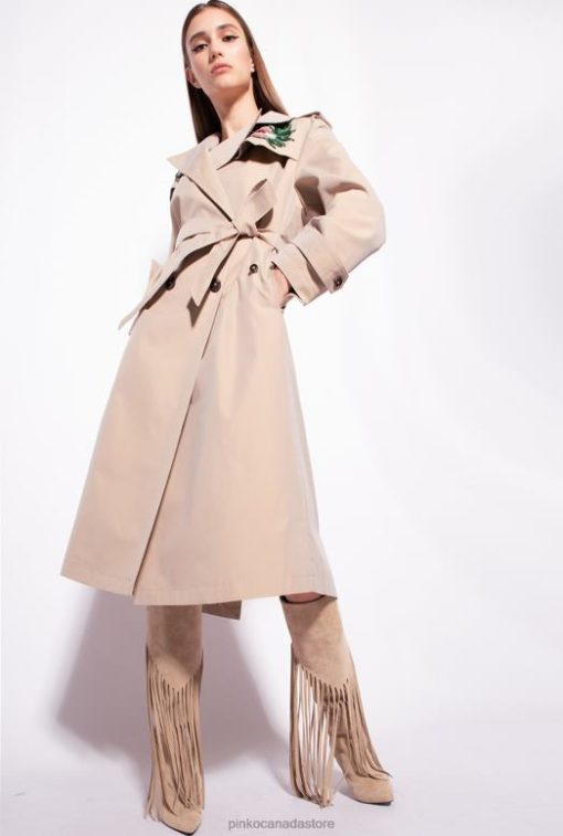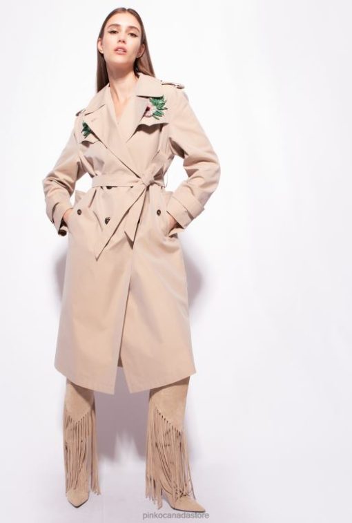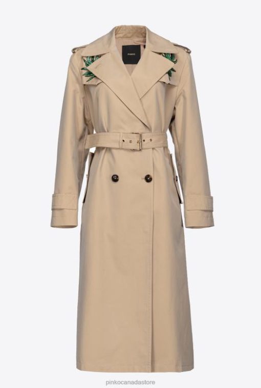 Coats | Embroidered trench coat Pinko SAFARI BEIGE T8J28837