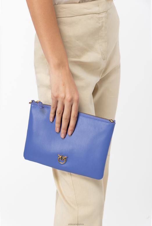 Crossbody Bags | Quilted nappa leather Flat Bag Pinko CLEMATIS BLUE-ANTIQUE GOLD T8J281192