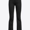 Bootcut denim jeans with five pockets and patch-effect laser detailing at the front. High waist with belt loops and slim-fitting legs that are cropped and flare out slightly at the bottom. Metal zip and tack button fastening.