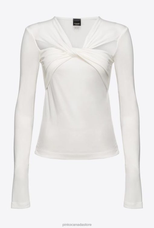 Jumpers | Long-sleeved top with crossover details Pinko CLOUD WHITE T8J28546