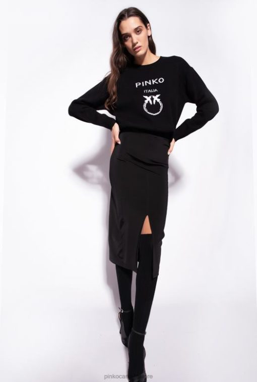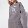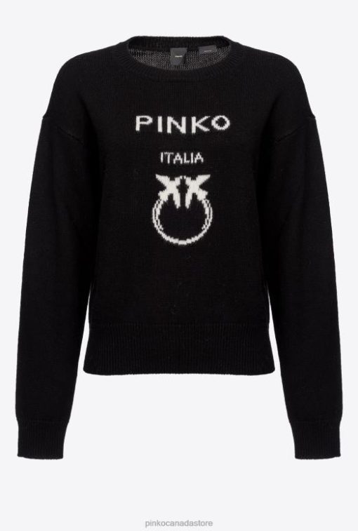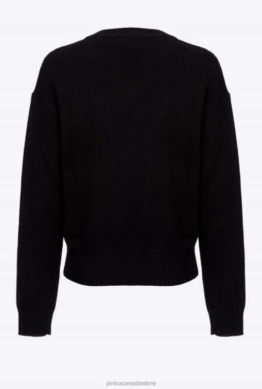 Long-sleeved pullover in 100% pure wool yarn, with PINKO logo and Love Birds inlay in the middle. Ribbed hem, cuffs and round neck.