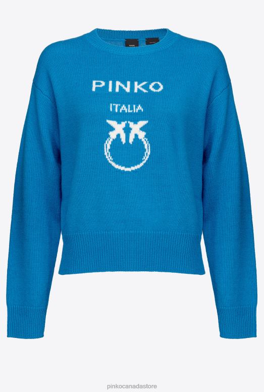 Long-sleeved pullover in 100% pure wool yarn, with PINKO logo and Love Birds inlay in the middle. Ribbed hem, cuffs and round neck. – Model is 175cm tall and wears a size 40.