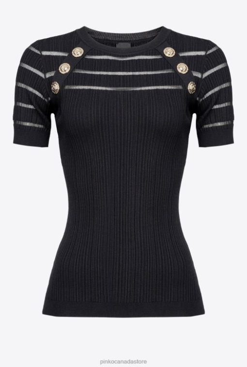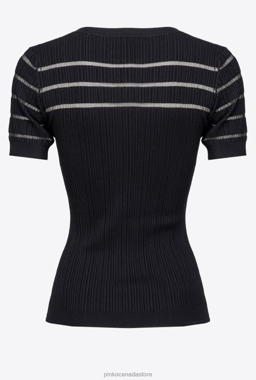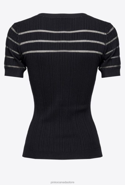 Jumpers | Ribbed sweater with sheer details Pinko LIMO BLACK T8J28502