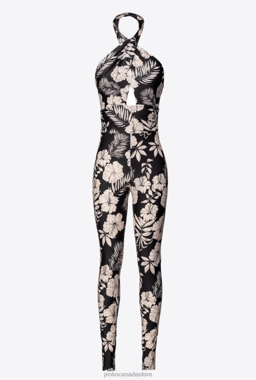 Jumpsuits and Dungarees | Slim-fit graphic floral jumpsuit Pinko BLACK/BUTTER T8J28160
