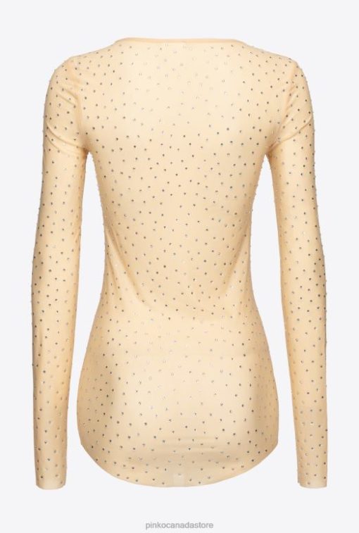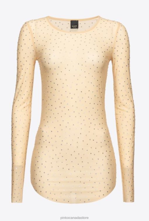 Lingerie | Fully rhinestoned sweater Pinko BEIGE-MATT ALMOND T8J28482