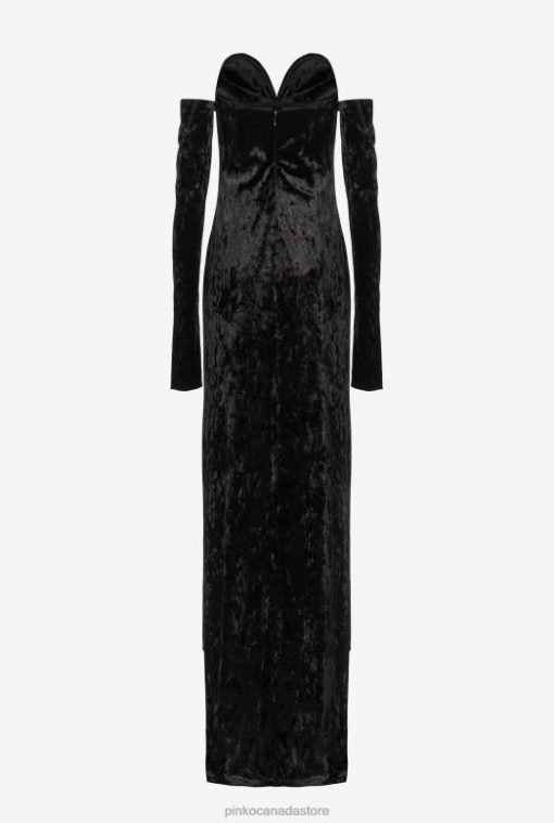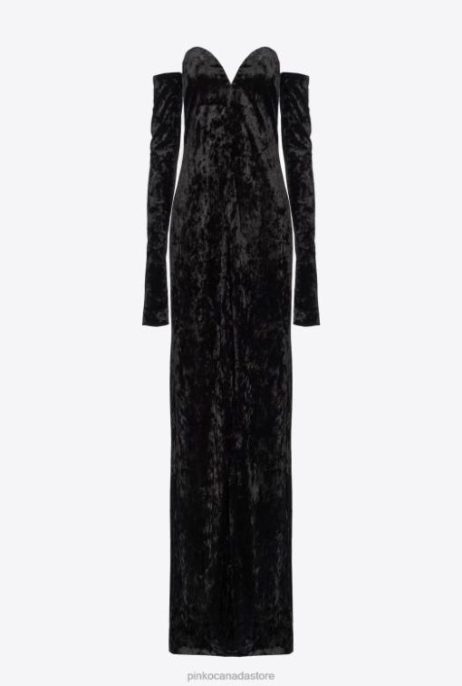 Long Dresses | Off-the-shoulder velvet dress Pinko LIMO BLACK T8J28198