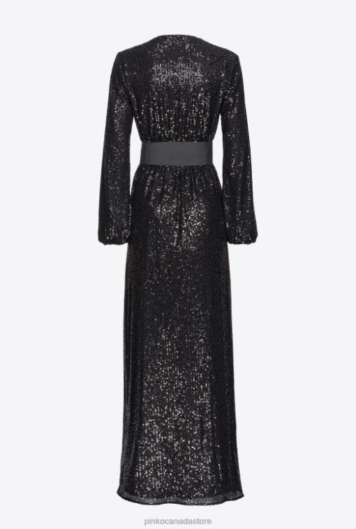 Long Dresses | Sequinned wraparound dress Pinko LIMO BLACK T8J28197