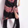 Long frilly skirt in ultra-light, semi transparent-effect muslin with openwork embroidery. Waist band and lining for the mini skirt to counteract the fabric’s see-through effect. Front button fastening.