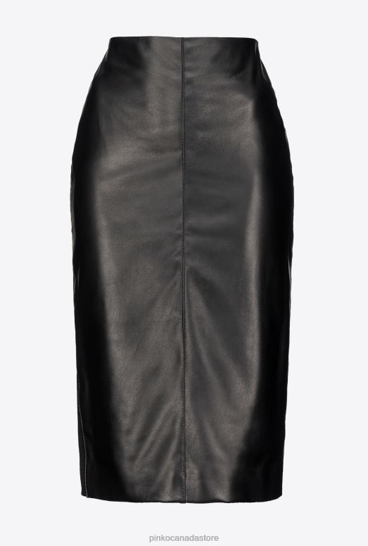 Calf-length pencil skirt with a leather front and stretch technical viscose fabric back. Straight fit and a central rear hem slit. Concealed central zip fastening on the back. – Model is 178cm tall and wears a size 40.