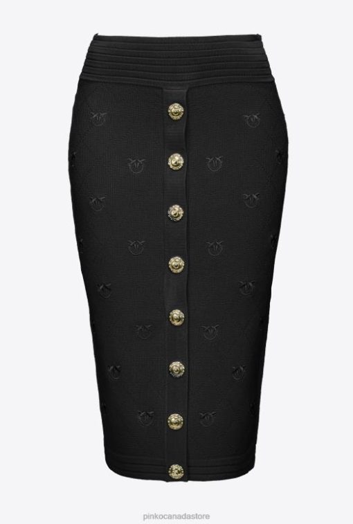 Mid-Calf Length Skirts | Jacquard Love Birds skirt Pinko LIMO BLACK T8J28826