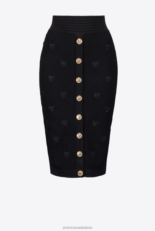 Midi skirt in pique-knit jacquard fabric, with Love Birds logo embroidered all over. Snug-fitting with elastic waistband and row of golden buttons down the front. Central metal zip fastening on the back.