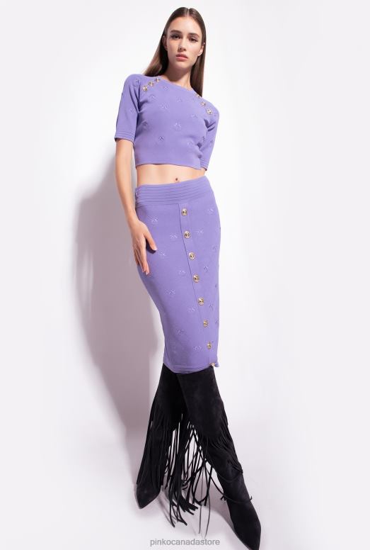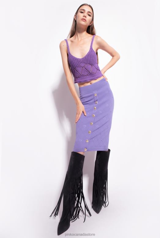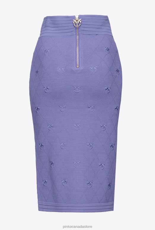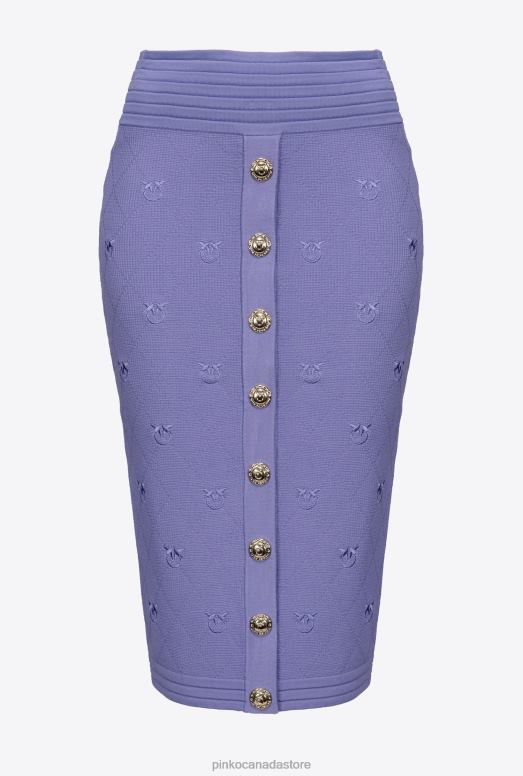 Midi skirt in pique-knit jacquard fabric, with Love Birds logo embroidered all over. Snug-fitting with elastic waistband and row of golden buttons down the front. Metal zip fastening in the middle at the back and pull customised with Love Birds logo. – Model is 177cm tall and wears a size 40.