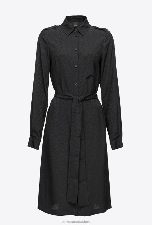 Mid-Length Dresses | Jacquard shirt dress with logo print Pinko LIMO BLACK T8J28119