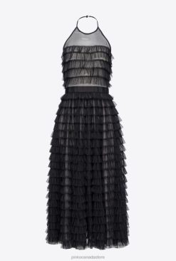 Mid-Length Dresses | Ruffled tulle midi dress Pinko BLACK/NUDE T8J28116