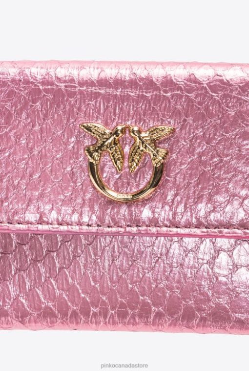 Purses | Galleria compact purse in laminated reptile skin Pinko POWDER PINK-SHINY GOLD T8J281168
