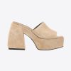 Heeled slip-on sandals in soft suede, with open square toe, 4 cm platform and rubber sole with 12 cm wedge. Leather insole and breathable microfibre lining.