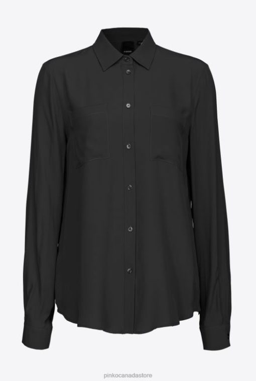 Shirts | Silk-blend shirt with breast pocket Pinko LIMO BLACK T8J28302