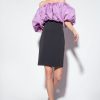 Slim-fit short dress in stretch crepe fabric featuring a voluminous taffeta upper section. This couture allure-reminiscent fabric has been designed to create elegant, striking and sculptural silhouettes: the crisp-touch taffeta boasts the same appearance on both the front and underside, and is particularly suitable for emphasising volumes. The contrasting-colour taffeta top features an off-the-shoulder neckline and balloon fit, in addition to a slim-fit cropped lower section that fastens by means of a central back zip. The garment is part of the Limited Edition special capsule collection which comprises PINKO Galleria-exclusive limited-edition models.
