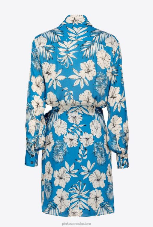 Short Dresses | Graphic floral mini dress Pinko TURQUOISE/BUTTER/BLACK T8J2874