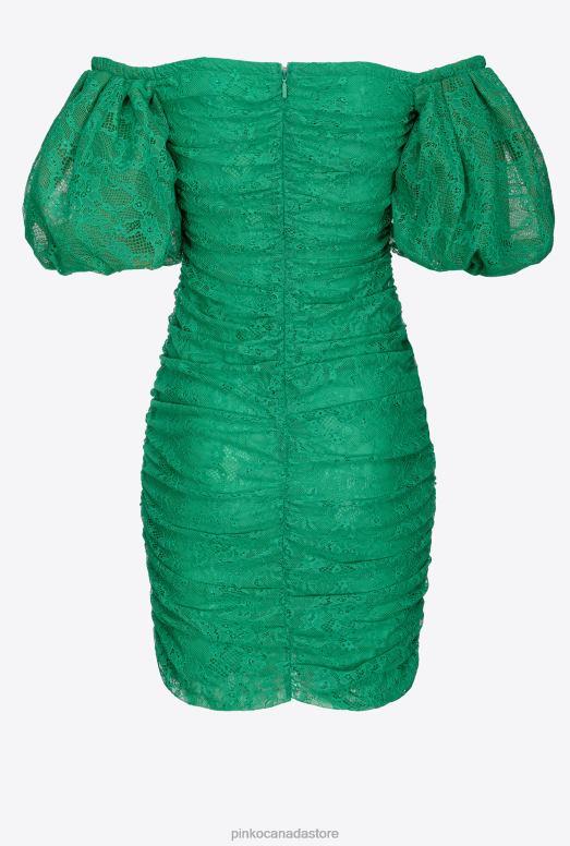 Short Dresses | Lace mini dress with gathering Pinko ENGLISH LAWN GREEN T8J28100
