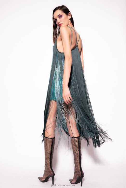 Short Dresses | Mini dress with long fringing Pinko MULT.GREEN/MINT GREEN T8J28190