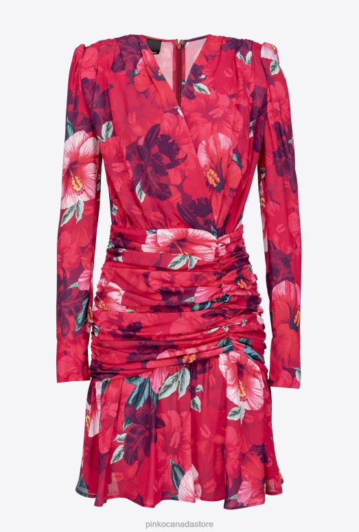 Short Dresses | Short hibiscus-print dress Pinko MULTI. FUCHSIA/PINK T8J28139