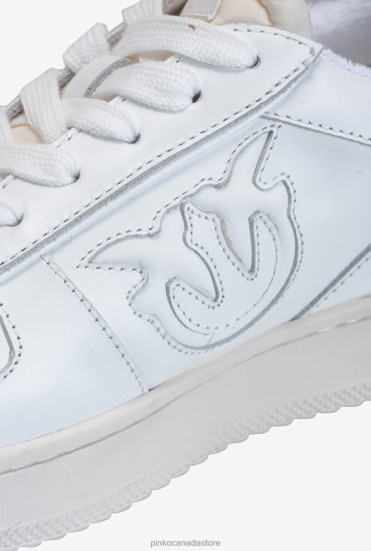 Flat leather sneakers embellished with contrasting inserts. Customised with inscribed Love Birds logo on both sides and PINKO logo on the heel. 3 cm rubber box sole. Leather insole and inner lining.