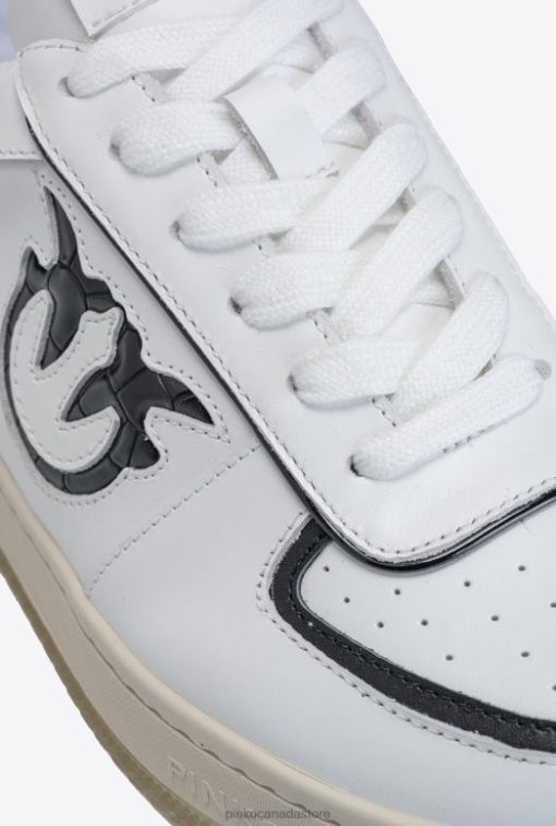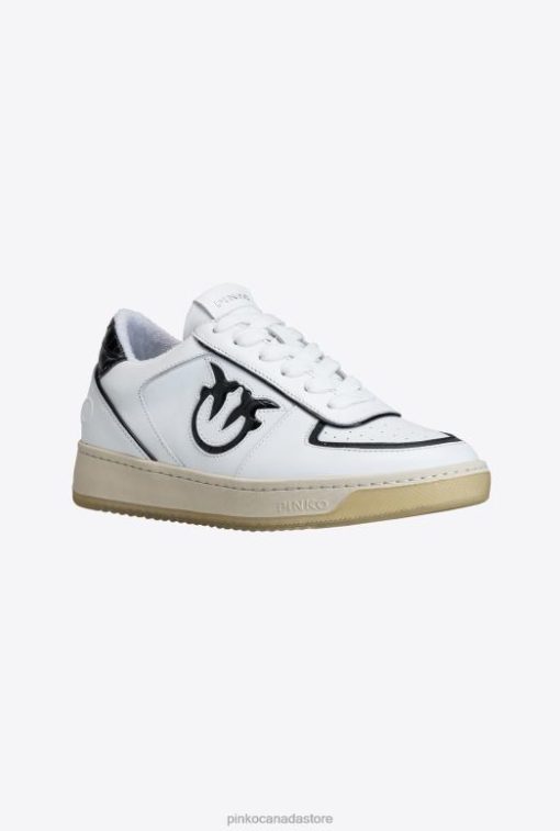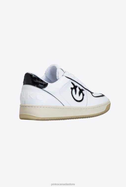 Flat leather sneakers embellished with contrasting inserts. Customised with inscribed Love Birds logo on both sides and PINKO logo on the heel. 3 cm rubber box sole. Leather insole and inner lining.