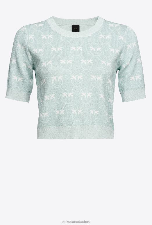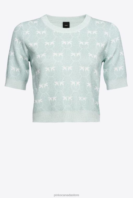 Sweaters | Cropped lurex Monogram sweater Pinko AQUAMARINE/WHITE T8J28450